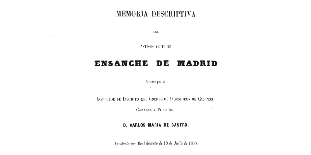 Memoria Descriptiva del Anteproyecto de Ensanche de Madrid», redactada por Carlos María de Castro y aprobada el 19 de julio de 1860: